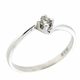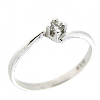 Anello solitario in oro bianco 750./.. (18 carati) grammi 1,76, con diamante centrale taglio brillante carati 0,09 BGSI