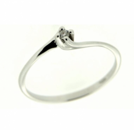 Anello solitario in oro bianco 750./.. (18 carati) grammi 2,6 con diamante centrale taglio brillante carati 0,08 BGSI