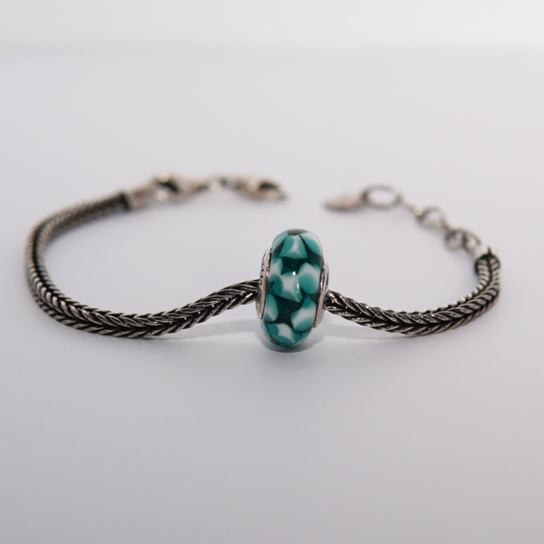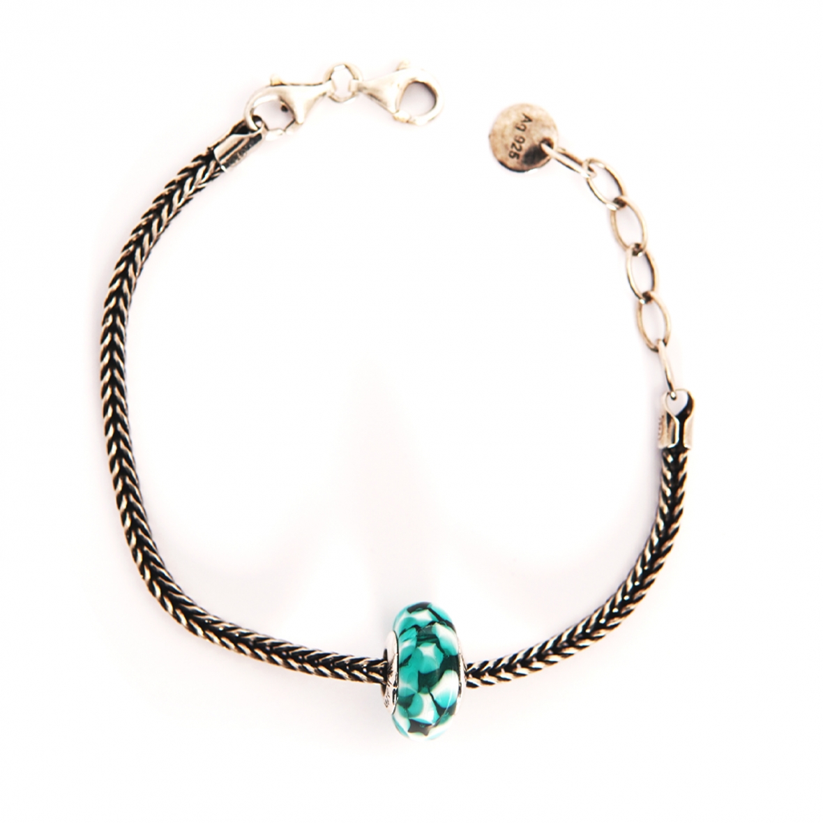 Bracciale in argento 925 brunito. Lunghezza del bracciale 16 cm. + 3 cm. di anelline. Disponibile anche misura più lunga (18CM. +3). Con l'acquisto del bracciale il ciondolo murrina è in omaggio. Puoi chiedere al 3383327800 una murrina differente.