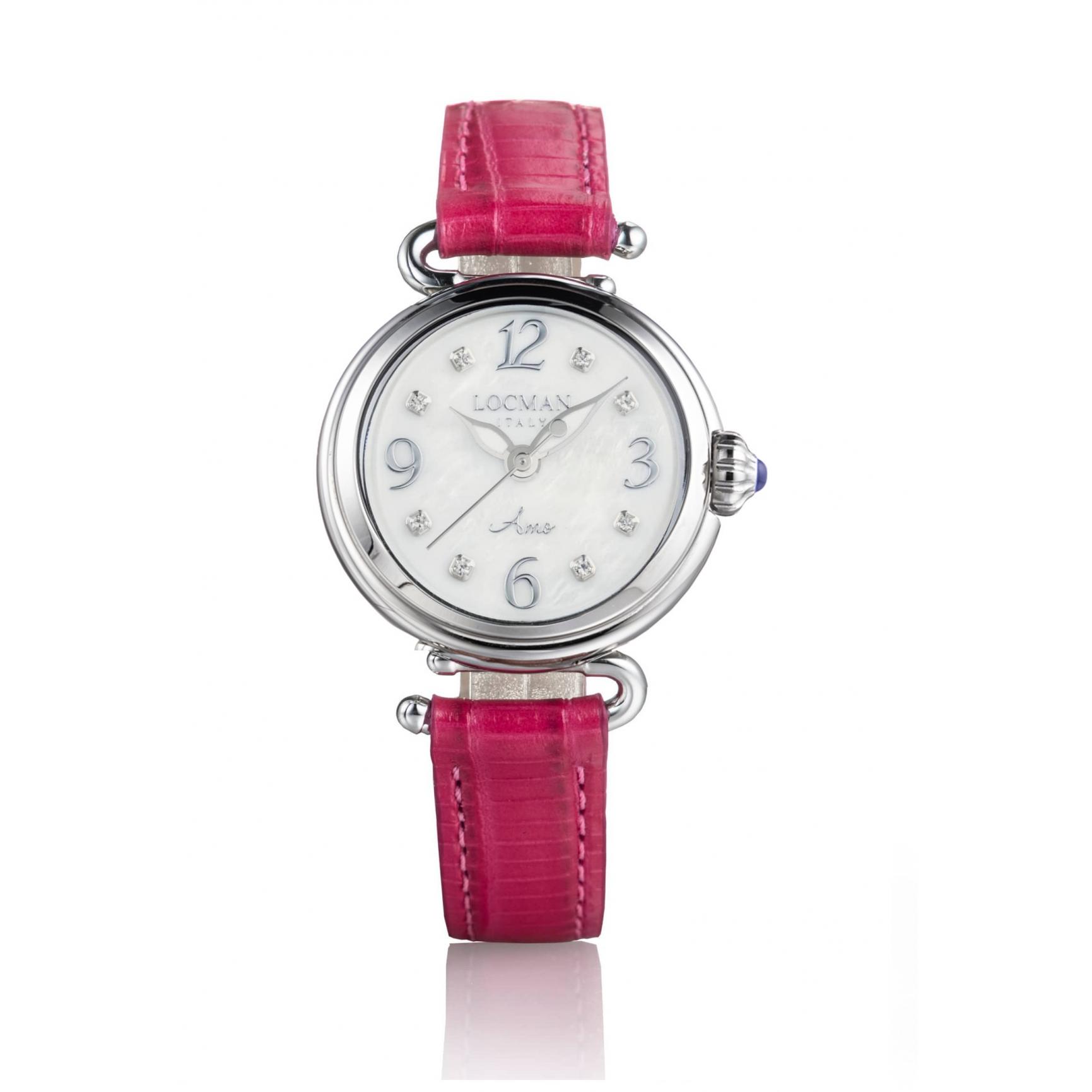 OROLOGIO DONNA SOLO TEMPO , CINTURINO IN PELLE CASSA IN ACCAIO E TITANIO CON FONDO BIACO MADREPERLATO CON BRILLANTINI