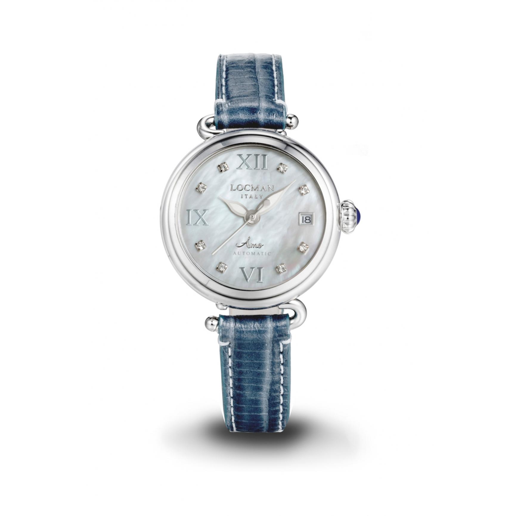 Codice EAN: 8052862937941 Descrizione: CASSA ACCIAIO/TITANIO MOVIMENTO AUTOMATICO COLLEZIONE AMO QUADRANTE MADREPERLATO CON BRILLANTI 0,150 KT. E CINTURINO PELLE BLU DIAMETRO 36 MM. 5 ATMOSFERE 2 ANNI DI GARANZIA