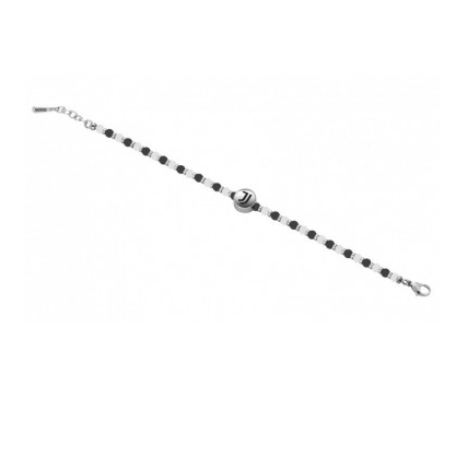 Bracciale con pietre con logo Juventus centrale smaltato in nero, chiusura in acciaio con moschettone con logo finale