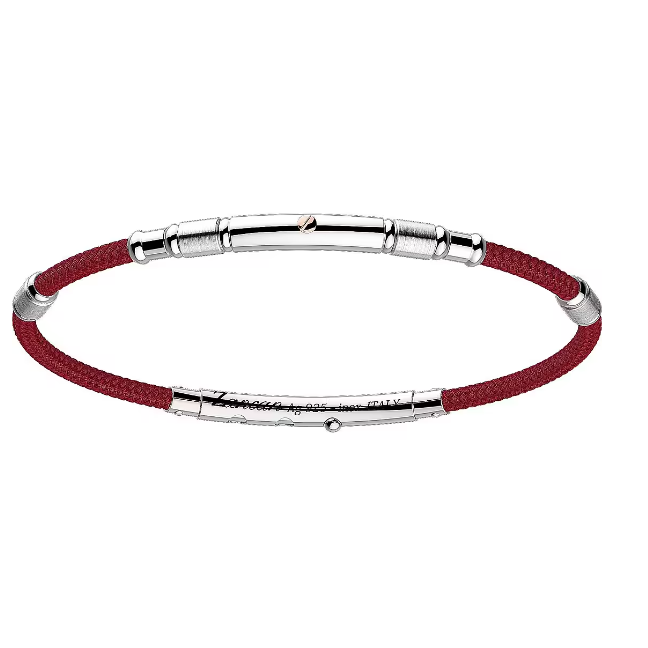 Bracciale da uomo di Zancan della collezione robikevlar. Gioiello in kevlar. Bracciale costituito da 1,80gr di argento925, 0,01gr d'oro 18kt e chiusura in acciaio 316l di colore rosso. Gioiello di misura standard 21 cm. La chiusura è regolabile a scatto.