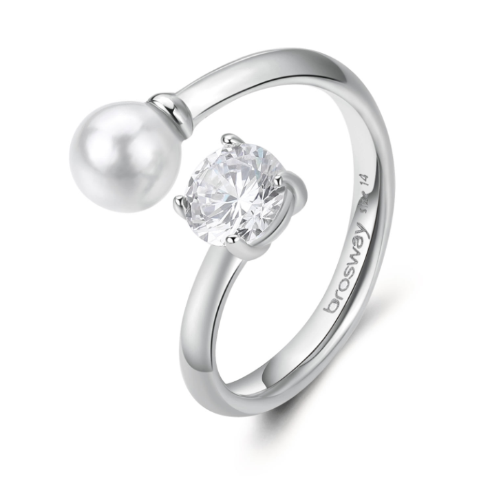 Anello in acciaio 316L con perla di conchiglia e cubic zirconia.
