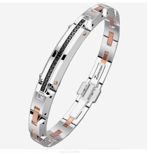 Bracciale in acciaio 316L trattamento PVD nero-rosa e spinelli neri.