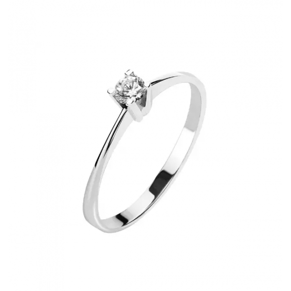Anello solitario in oro bianco 18 carati grammi 1,75 con diamante centrale taglio brillante carati 0,14 colore G, purezza SI