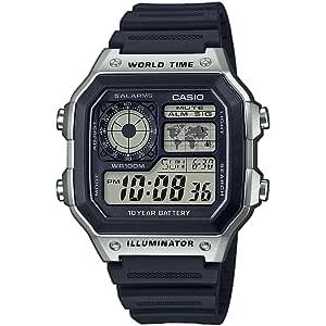 Multi Time (4 città diverse) Ora internazionale 31 fusi orari (48 città + tempo coordinato universale), attivazione/disattivazione dell'ora legale, passaggio dalla città per l'ora del proprio fuso orario alla città per l'ora internazionale Cronometro Cronometro a centesimi di secondo Capacità di misurazione: 23:59'59,99'' Modalità di misurazione: tempo trascorso, tempo parziale, tempi del 1° e 2° posto Timer Timer conto alla rovescia Unità di misura: 1 decimo di secondo Intervallo inserito: da 1 secondo a 24 ore (incrementi di 1 secondo, incrementi di 1 minuto e incrementi di 1 ora) Promemoria sonoro /Segnale orario 5 promemoria sonori giornalieri o singoli Segnale orario Luce Durata illuminazione selezionabile luce LED, luminescenza Colore chiaro LED:Ambra Calendario Calendario automatico completo (fino all'anno 2099) Disattivazione del volume Attivazione/disattivazione del segnale acustico di pressione pulsanti