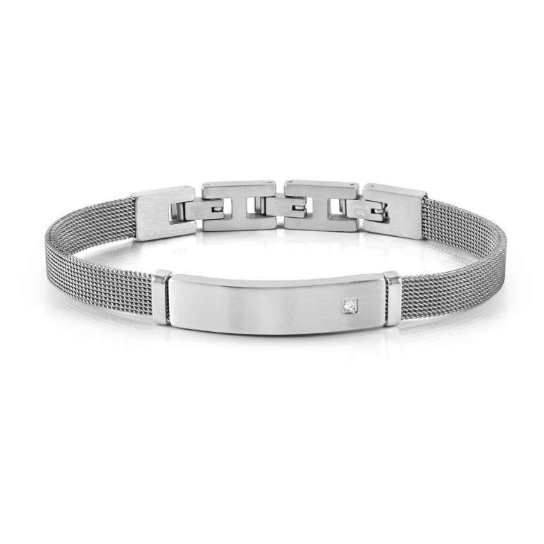 Bracciale in acciaio satinato con Cinturino e un Cubic Zirconia bianco o nero