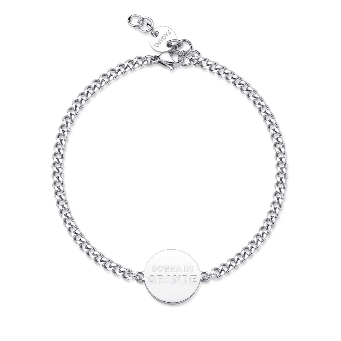 Bracciale in acciaio 316L con centrale con scritta incisa e incisione a tema laurea sul retro.