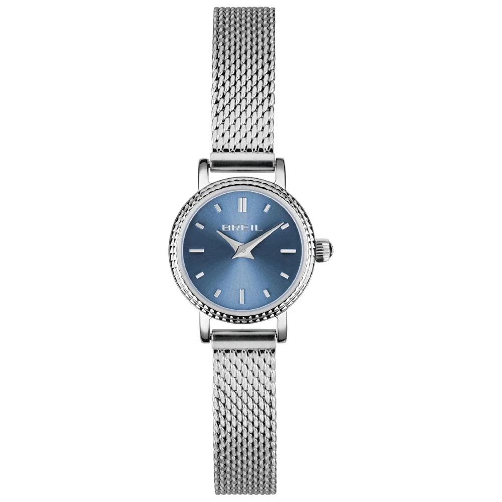 Orologio da donna Breil Darling ref. TW2001. Cassa da 18 mm in acciaio inossidabile, quadrante blu con indici e sfere. Lunetta decorata. Bracciale in acciaio maglia milanese (maglia mesh) con chiusura a scorrimento. Impermeabile fino a 3 bar. Peso 21 gr. Scatola originale e garanzia internazionale valida 2 anni.