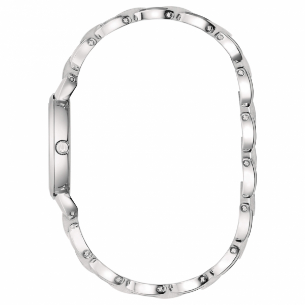Un orologio che unisce raffinatezza e precisione. Cassa in acciaio da 28mm, quadrante madreperla con 3 diamanti, movimento al quarzo. Resistente all’acqua fino a 3 bar. Cinturino in acciaio con chiusura deployante.