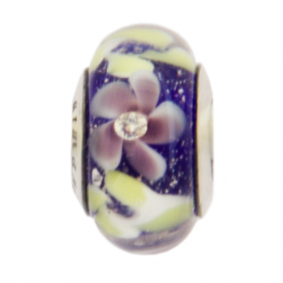 L'abbinamento di materiali, artigianalità e ricercatezza danno vita ad una bead unica nel suo genere, ravvivata da un cristallo swarovski accolto in un involucro di murano trasparente, incrementando l'effetto della tridimensionalità che la contraddistingue.