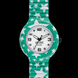 L'Hip Hop perfetto per il polso dei più piccoli! Cinturino stampato con la tecnica "water transfer" a tema stelline, con numeri arabi agli indici per imparare a leggere le ore e hiphoppizzare la propria vita!